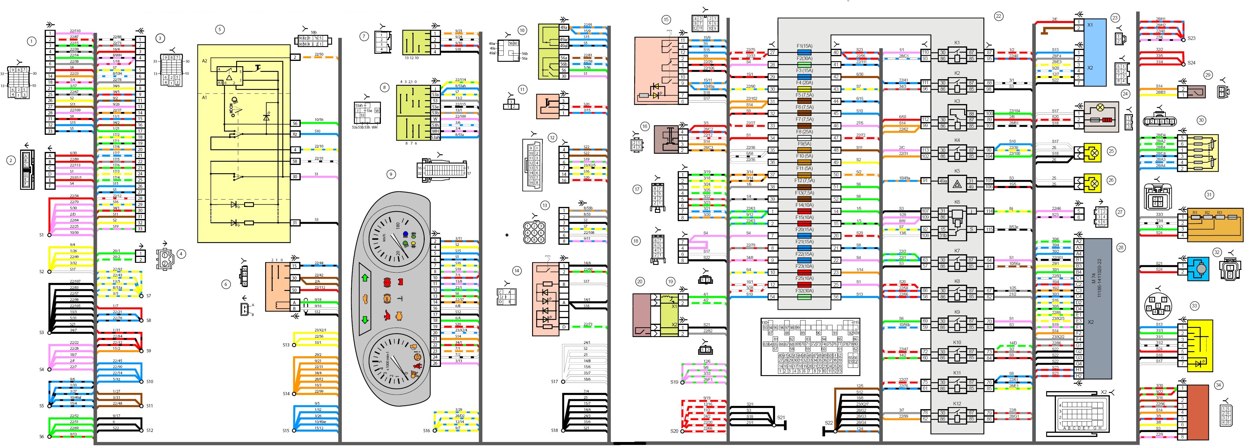 Схема электрических соединений жгута панели приборов LADA GRANTA 21900